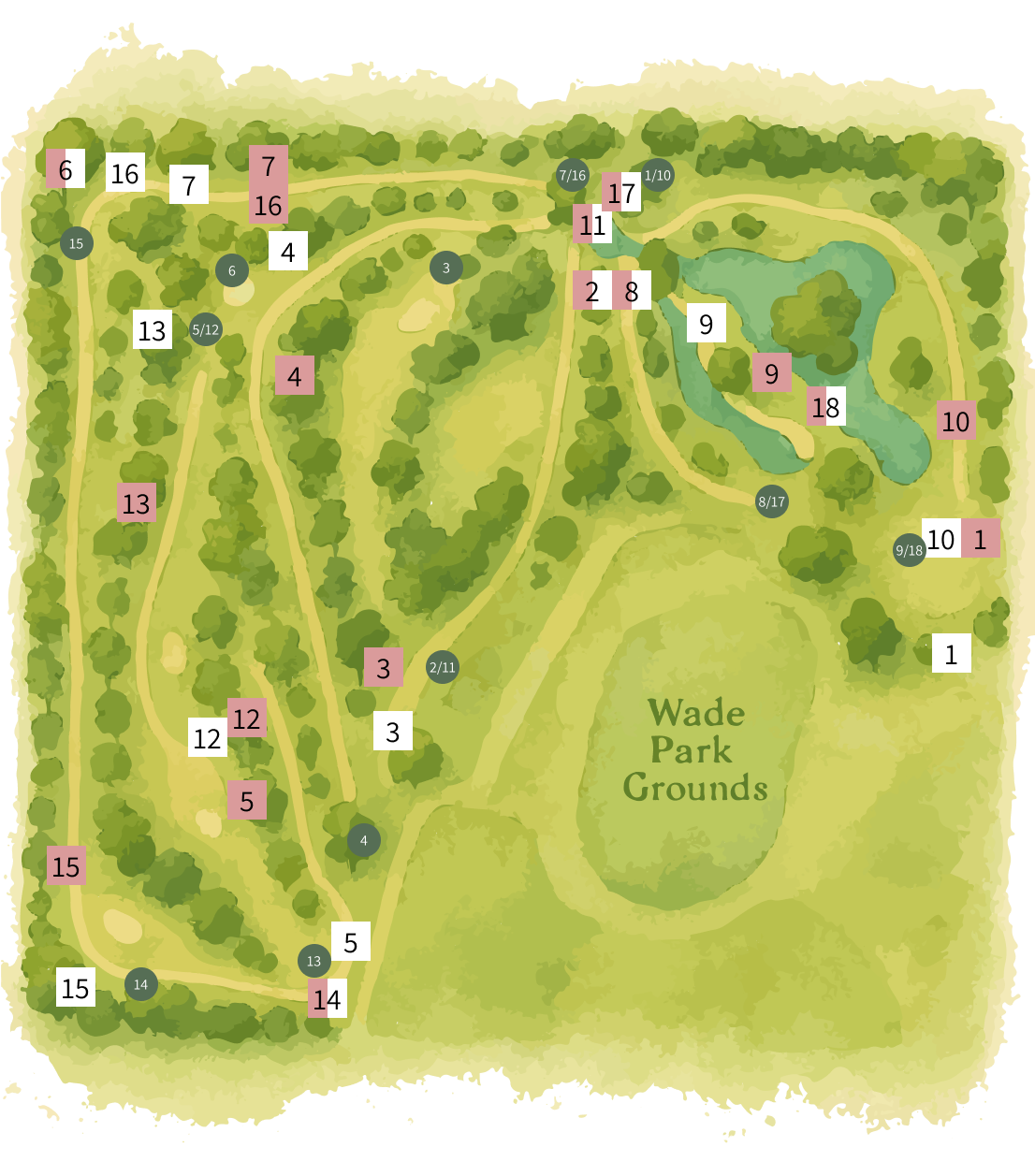 Entrance: Turn left off Twigg Rd, approximately 150 m past the Wade Park entrance.